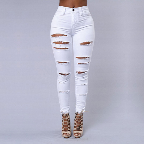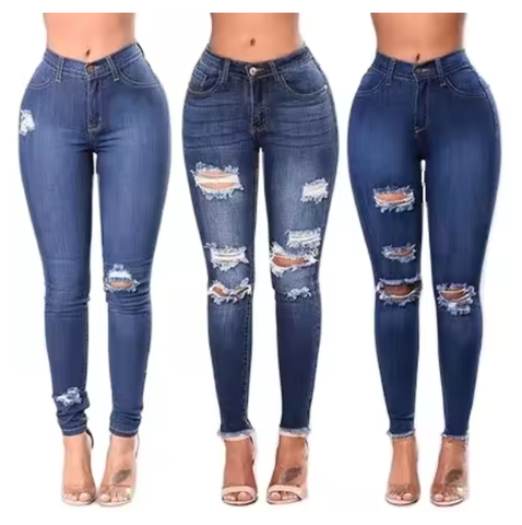 Casual Ladies SKINNY Pants Girl Fashion Ripped Jeans Women Breathable Denim with Solid Pattern Hole Decoration