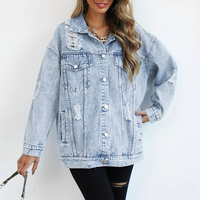 เสื้อแจ็กเก็ตผ้ายีนส์ของผู้หญิงเสื้อคลุมยีนส์หลวมสีฟ้าอ่อนใหม่สำหรับ2025
