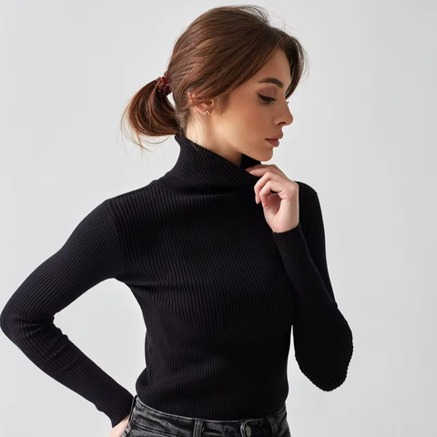 Hot Bán Mùa Thu Mùa Đông Màu Rắn Cao Cổ Áo Len Lỏng Giảm Béo Linh Hoạt Dệt Kim Áo Len Cho Phụ Nữ