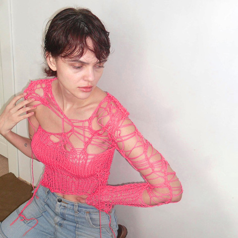 Phụ Nữ Của Mùa Đông Gothic Giản Dị Y2K In Áo Thun Màu Rắn Lụa Dệt Kim Rìa Rỗng Thô Cạnh Phía Trước Logo Trang Trí
